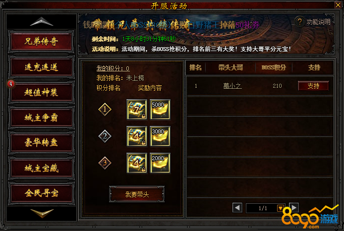 【活动内容】活动期间,杀BOSS抢积分,排名前三有大奖!