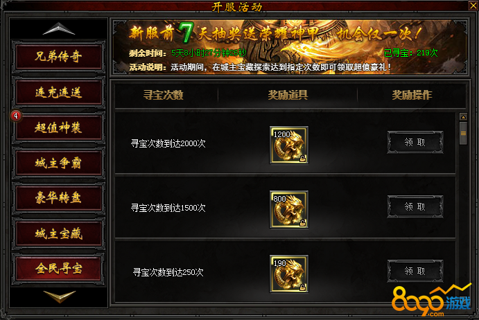 【活动内容】活动期间,玩家寻宝达到指定次数即可领取奖励。