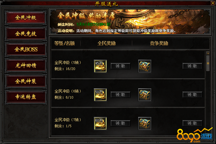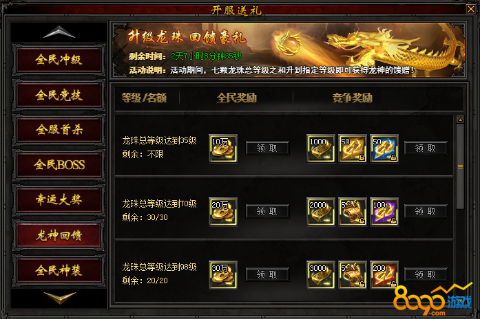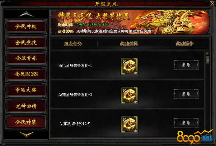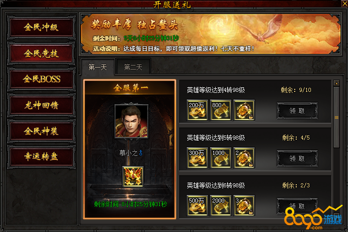 【活动内容】新区开启后,每天登录即可领取超值大礼。