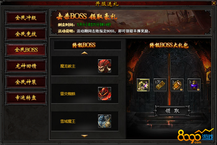 【活动内容】活动期间,击杀对应BOSS取海量奖励!