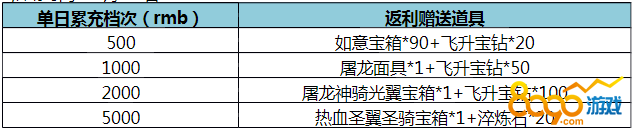 注:活动期间,每日仅能获得达标最高一档的充值奖励,活动结束后统一邮件申请发放,可与日常返利叠加;
