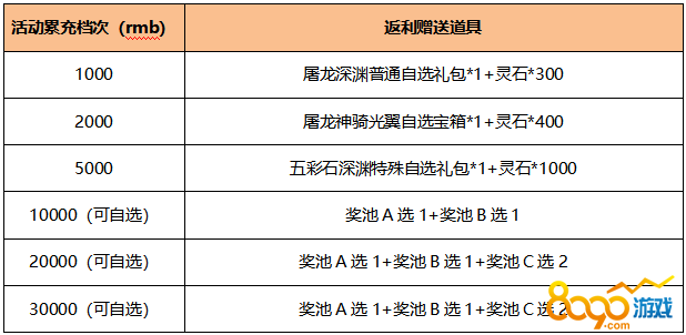 注:活动期间,每档充值奖励可累计领取,活动结束后统一申请发放(定制的再确定奖励后发放),可与其他活动叠加;