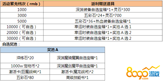 注:活动期间,每档充值奖励可累计领取,活动结束后统一申请发放(定制的再确定奖励后发放),可与其他活动叠加;