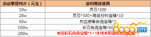 1.玩家在活动期间,累计提取元宝超过10w及以上即可获得额外100%元宝返利;