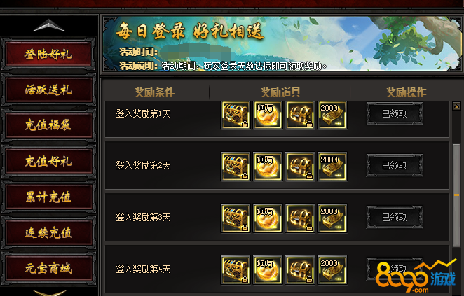 活动规则:累计充值达到要求即可领取丰厚奖励