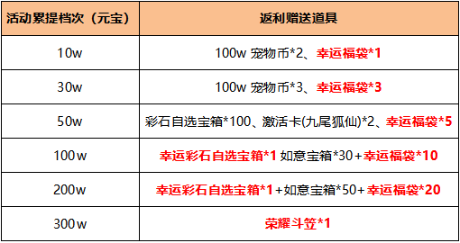活动期间,玩家每累计提取10W元宝,可以额外获得荣耀宝钻*1;