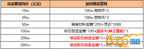 1.玩家在活动期间,累计充值提取元宝超过10W及以上即可获得额外100%元宝返利;
