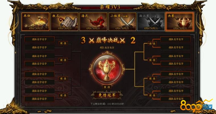 八强队奖励:荣耀八强队(称号)*1、如意宝箱*80、战纹结晶*3000