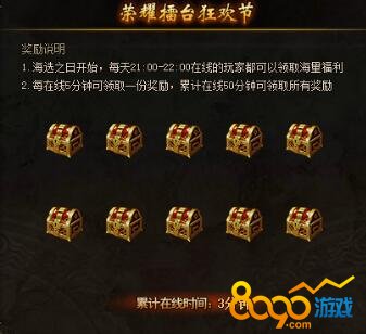 2)每在线5分钟可领取一份奖励,累计在线50分钟可领取所以奖励