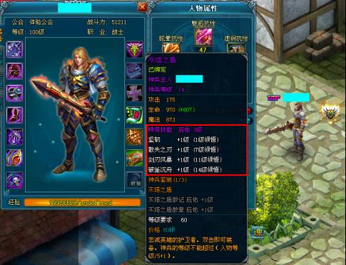 新手装备大礼包:紫色衣服、蓝色护符和2个3级强化石;