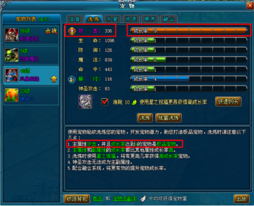 活动期间,将宠物成功洗练为极品宠物(主属性为攻击,且攻击成长率为9),即可获得系统赠送的500金叶子!