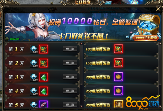【活动内容】购买后奖励分7天返还,每日可领取丰厚奖励,各类珍稀材料、海量钻石和元宝等您领取。更有额外升级奖励