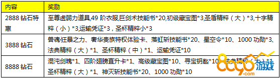【活动内容】玩家可一次性花费2888钻石、3888钻石、5888钻石购买不同档位的特惠礼包