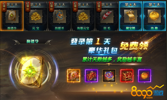 【活动内容】天天登陆,豪华礼包免费领!累计天数越多,奖励越丰富!
