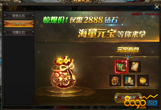 【活动内容】惊爆价!仅需2888钻石海量元宝等你来拿