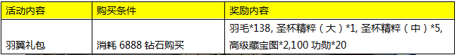 【活动内容】羽翼进阶大礼包 只需6888钻石羽翼飞升劲省无数