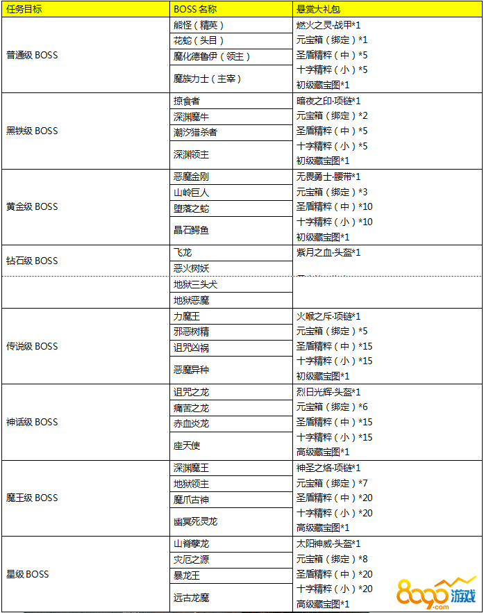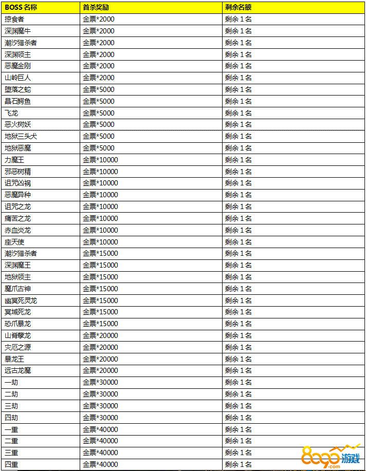 【活动内容】活动期间内,全服第一次击杀对应BOSS的玩家即可获得丰厚奖励,数量有限,先到先得!