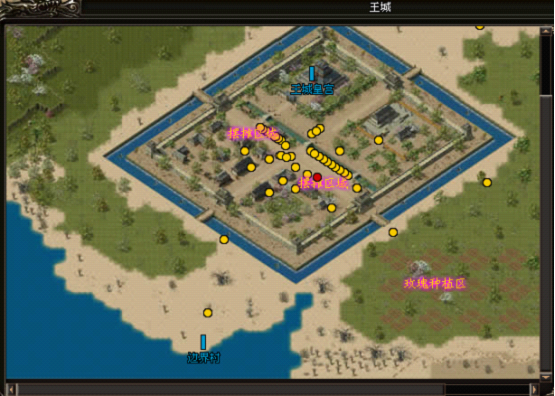 在人物属性背包界面里有“摆摊”按钮,可以选择按钮进行摆摊。但首先要来到地图“王城”摆摊区(如图):