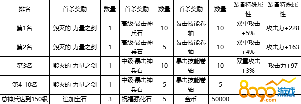 活动期间内,神兵达到要求可领取对应奖励