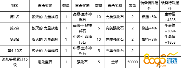活动时间:开服第一天,活动结束后,奖励通过邮件发放