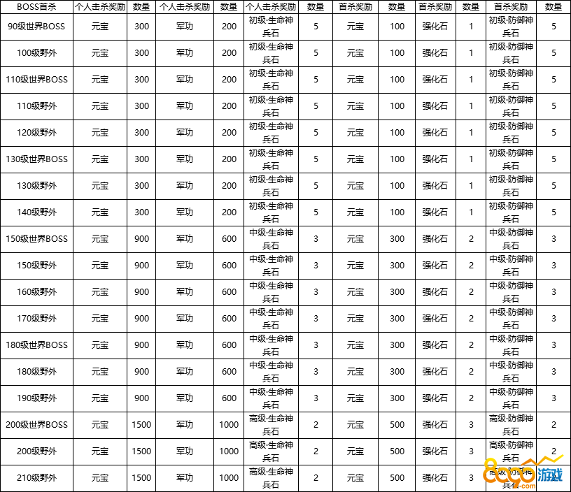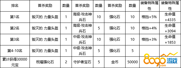 Ø 活动期间,击杀指定BOSS可获得奖励,分为个人击杀奖励与首杀奖励