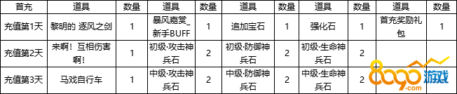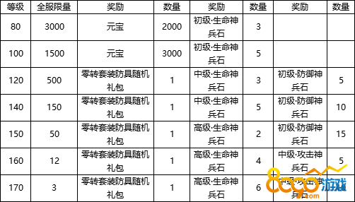 活动时间:开服第三天,活动结束后,奖励通过邮件发放