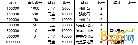 活动期间内,装备战力达到要求可领取对应奖励