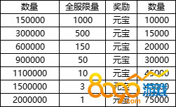 活动期间内,获得元宝数量达到要求可领取对应奖励