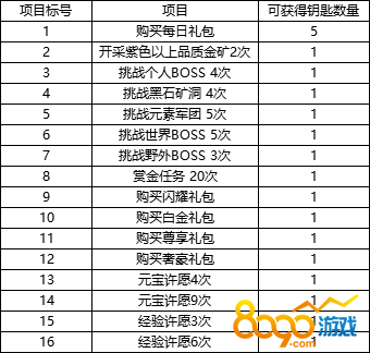 Ø 活动期间可完成以下任务获得白银钥匙