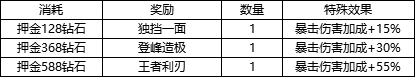 Ø 宝库限购活动,活动期间每日可花费50钻石获得限购豪礼获得以下道具: