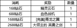 Ø 活动期间内花费998钻石投资,返利100%,加送额外奖励