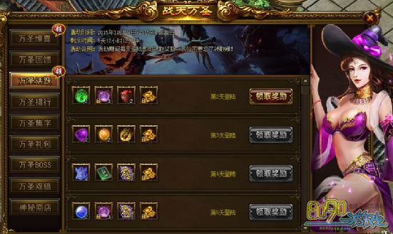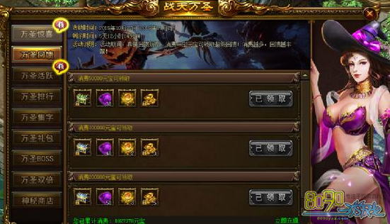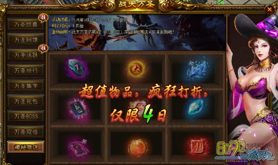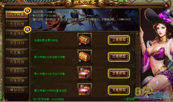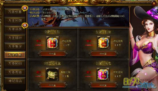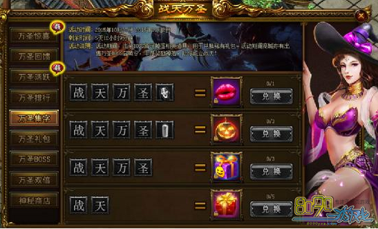 【活动内容】:活动期间,击杀BOSS即可掉落相关道具用于兑换稀有礼包!活动期间商城亦有万圣BOSS召唤令出售,丰厚奖励掉落! 兑换稀有礼包有几率开出万圣时装包厢哦!