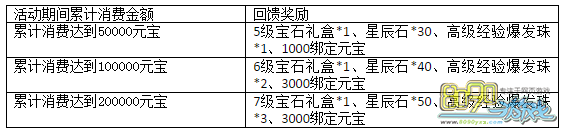 【活动内容】:活动期间,真情回馈玩家!消费一定元宝可领取超级回馈;消费越多,回馈月丰厚!