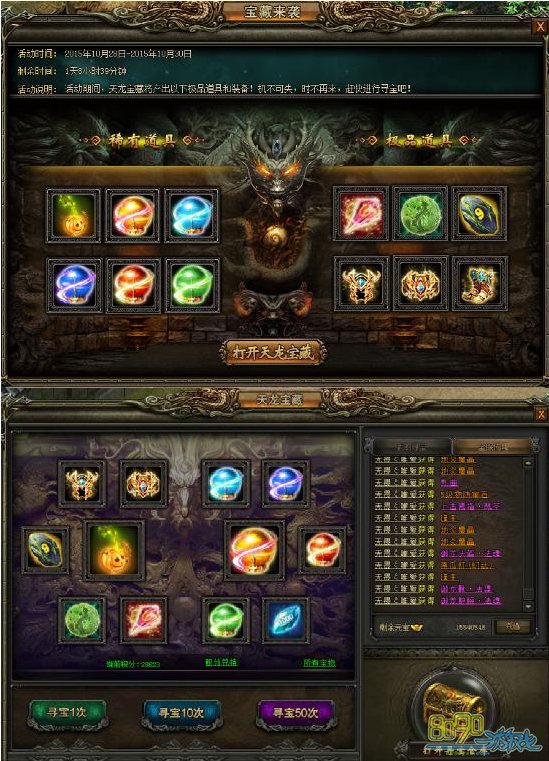 活动内容:活动期间,天龙宝藏中将产出南瓜灯(幻武)、9级宝石等各种珍稀道具!机不可失!