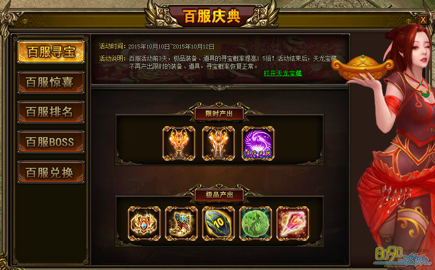 【活动时间】:整百服开启当天0点~第三天24点