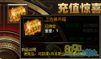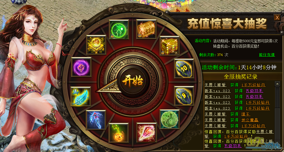 【活动内容】:活动期间,每提取5000元宝可获得1次抽奖机会,百分百中奖!可获得南瓜灯(幻武)、亡灵追魂(幻武)、上古装备箱、10级黑铁等大量奖励哦!