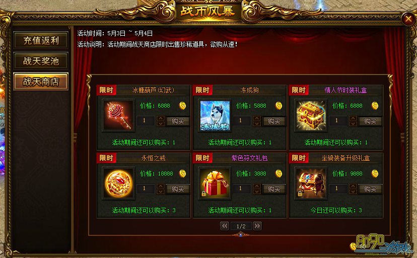 活动内容:活动期间战天商店出售珍稀道具!欲购从速!