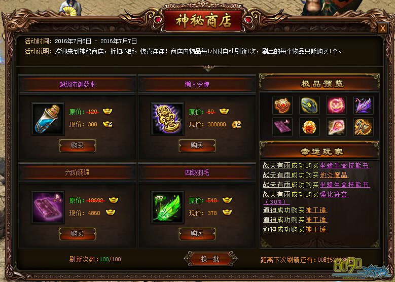 《战天》神秘商店活动