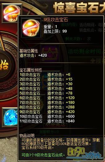 活动期间,每提取5000元宝可获得1次抽奖机会,百分百中奖!可获得9级攻击宝石、8级宝石礼盒等大量奖励哦!