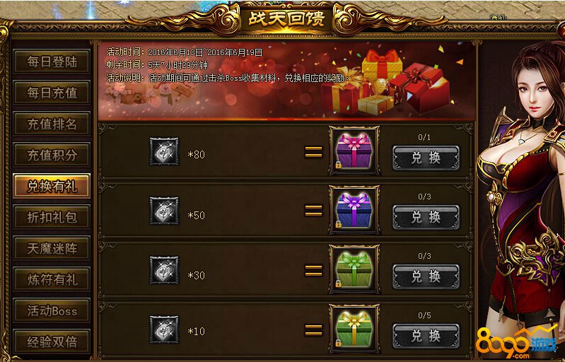 活动内容:活动期间,通过击杀BOSS收集材料,可兑换相应的奖励。