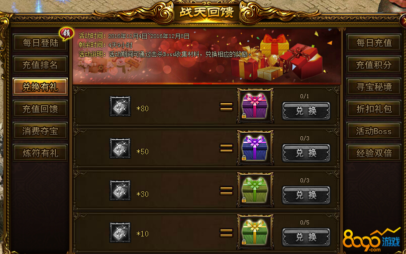 活动内容:活动期间,通过击杀BOSS收集材料,可兑换相应的奖励。
