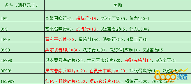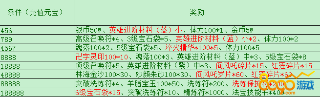 活动期间累计充值达到活动条件,即可领取对应奖励内容