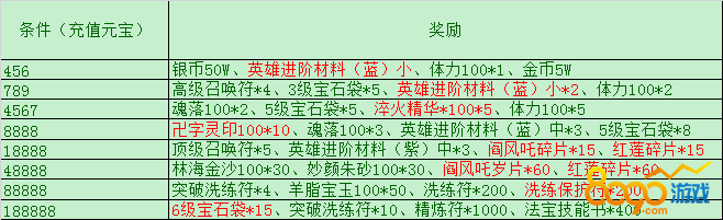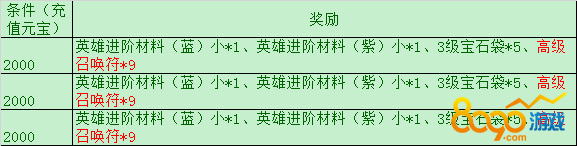 活动期间累计充值达到活动条件,即可领取对应奖励内容