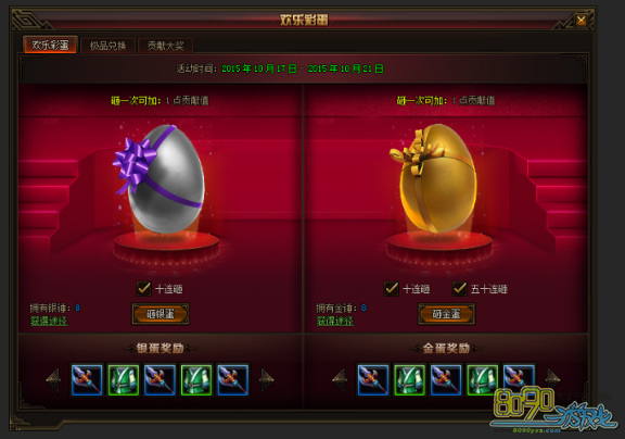 3、砸蛋会获得贡献度,可以领取贡献度奖励。更有排行大奖等你拿!