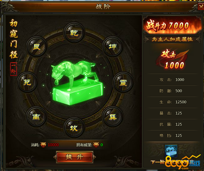 1、可通过消耗威望对战阶进行提升,战阶等级越高,消耗威望越多