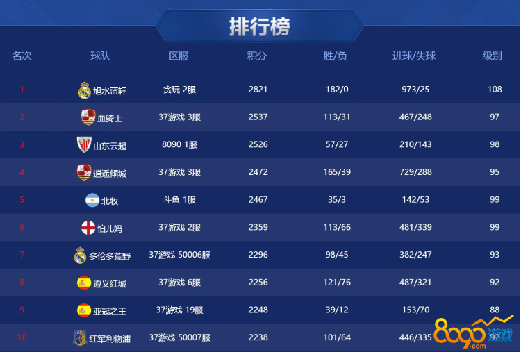 搜索"8090网页游戏"焦点一:最佳足协天梯赛排名更新