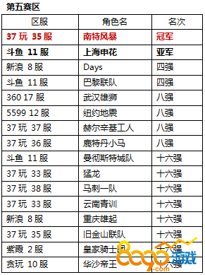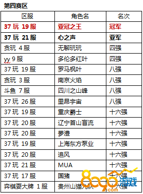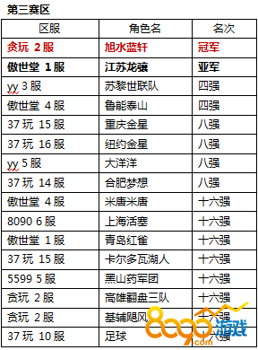 附:各赛区16强名单