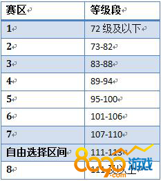 ●赛区将按照玩家报名时的等级划分为8个赛区