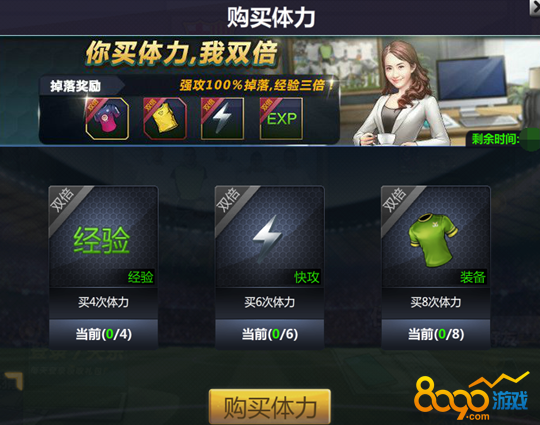 3、购买8次体力后可激活装备掉落个数双倍加成