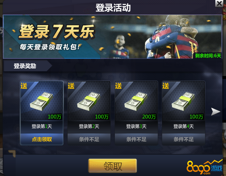 内容:玩家每日登陆游戏,可获得海量欧元;